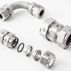 Mechanical pipe fitting (sizes 15A to 50A) designed to substitute welded stainless steel connections. Consist of nut, back ferrule, retainer, o-ring and body. Reduces labor cost of welding, reduces flow resistance for better performance, enables piping change (reassembly) for better maintenance, simple and quick assembly, ideal for areas the prohibit open flames (welding) on site.